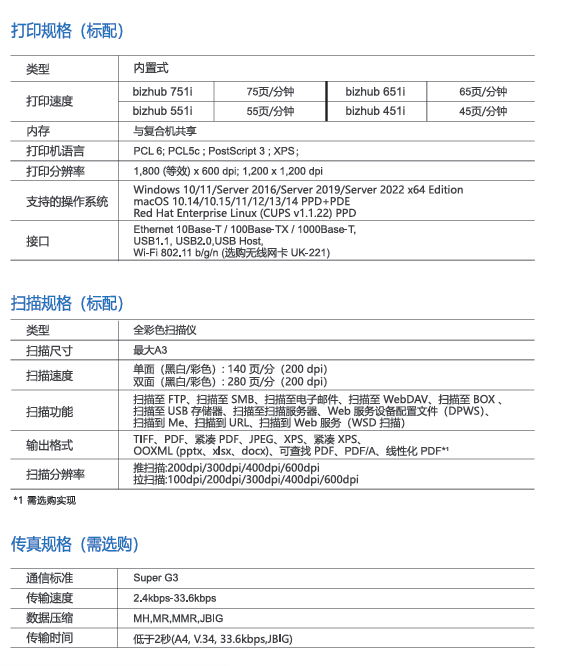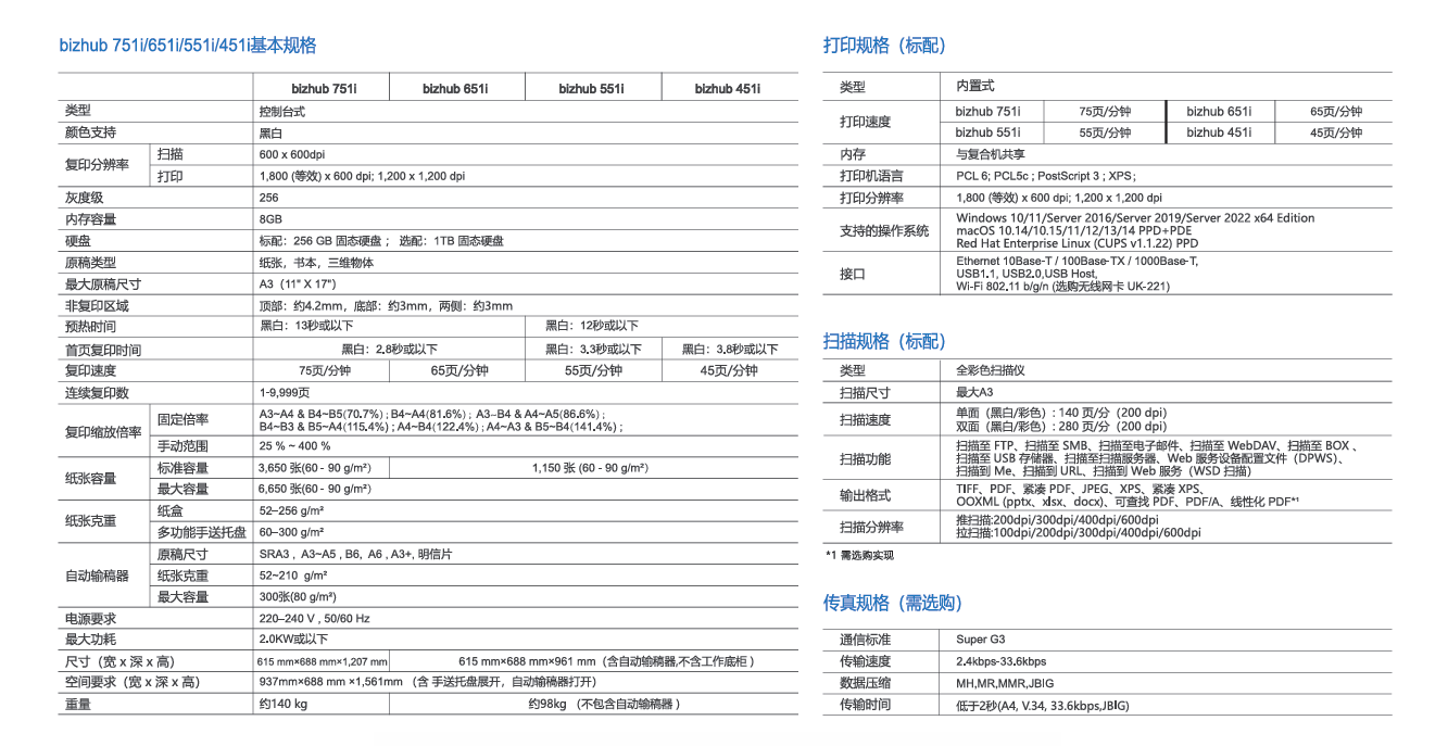 bizhub 751i A3 黑白多功能复合机租赁套餐