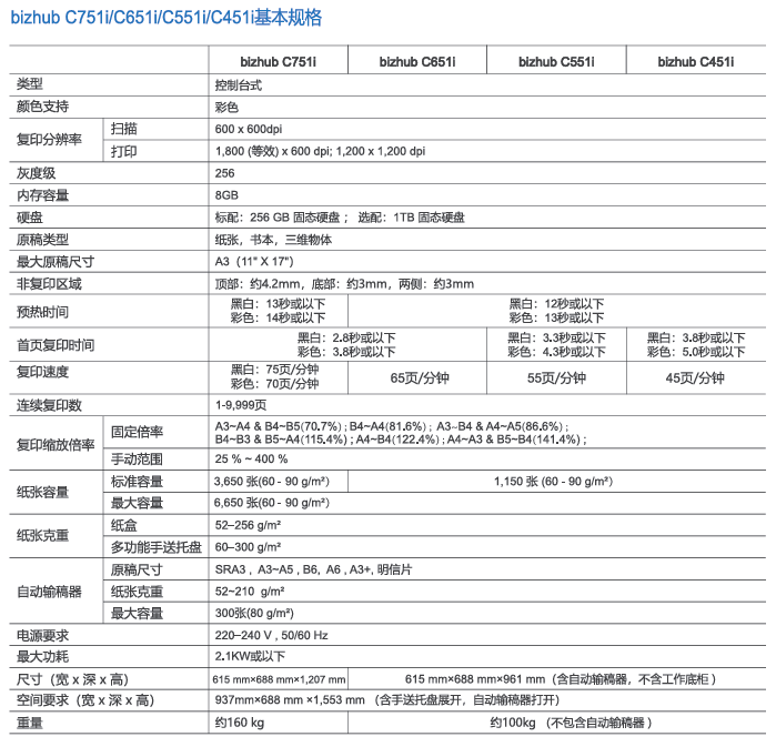 bizhub C751i A3 彩色多功能复合机租赁套餐